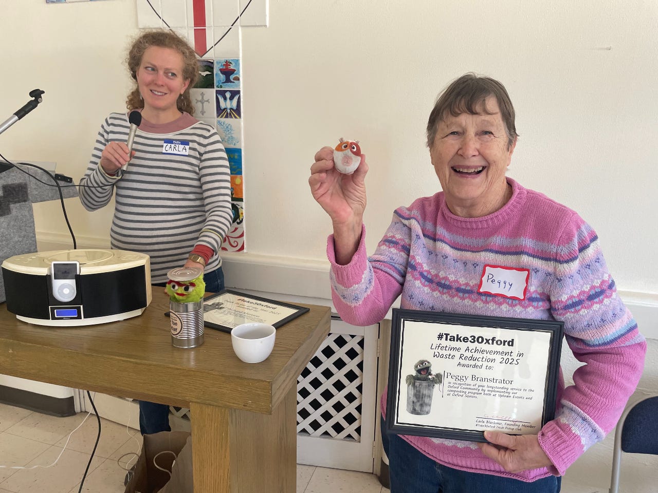 Lifetime Achievement in Waste Reduction: Peggy Branstrator, recognizing longstanding service to the Oxford Community by implementing our compost program both at Uptown Events and at Oxford Seniors.